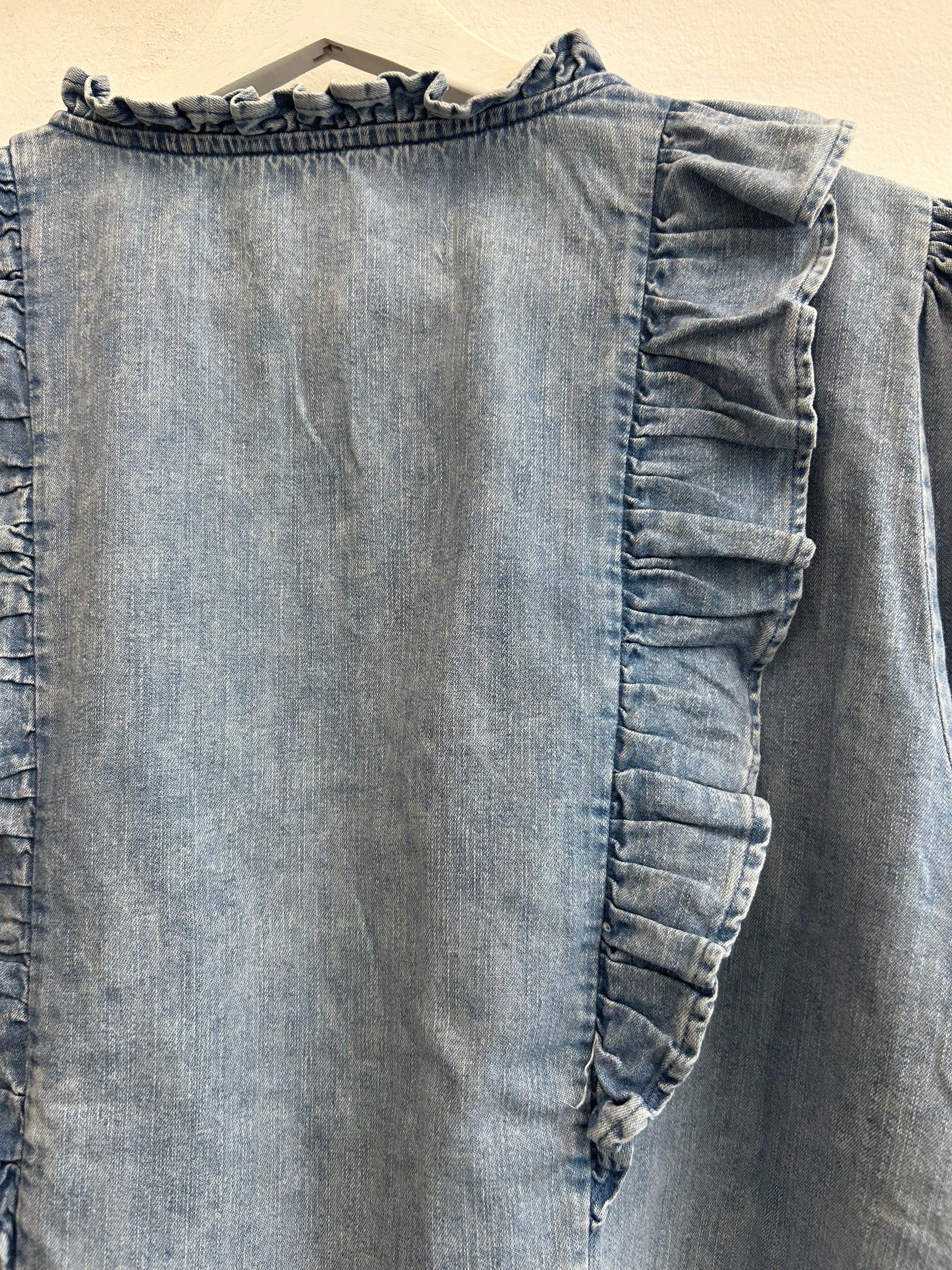 Ruffle detail denim 3/4 sleeve top size M